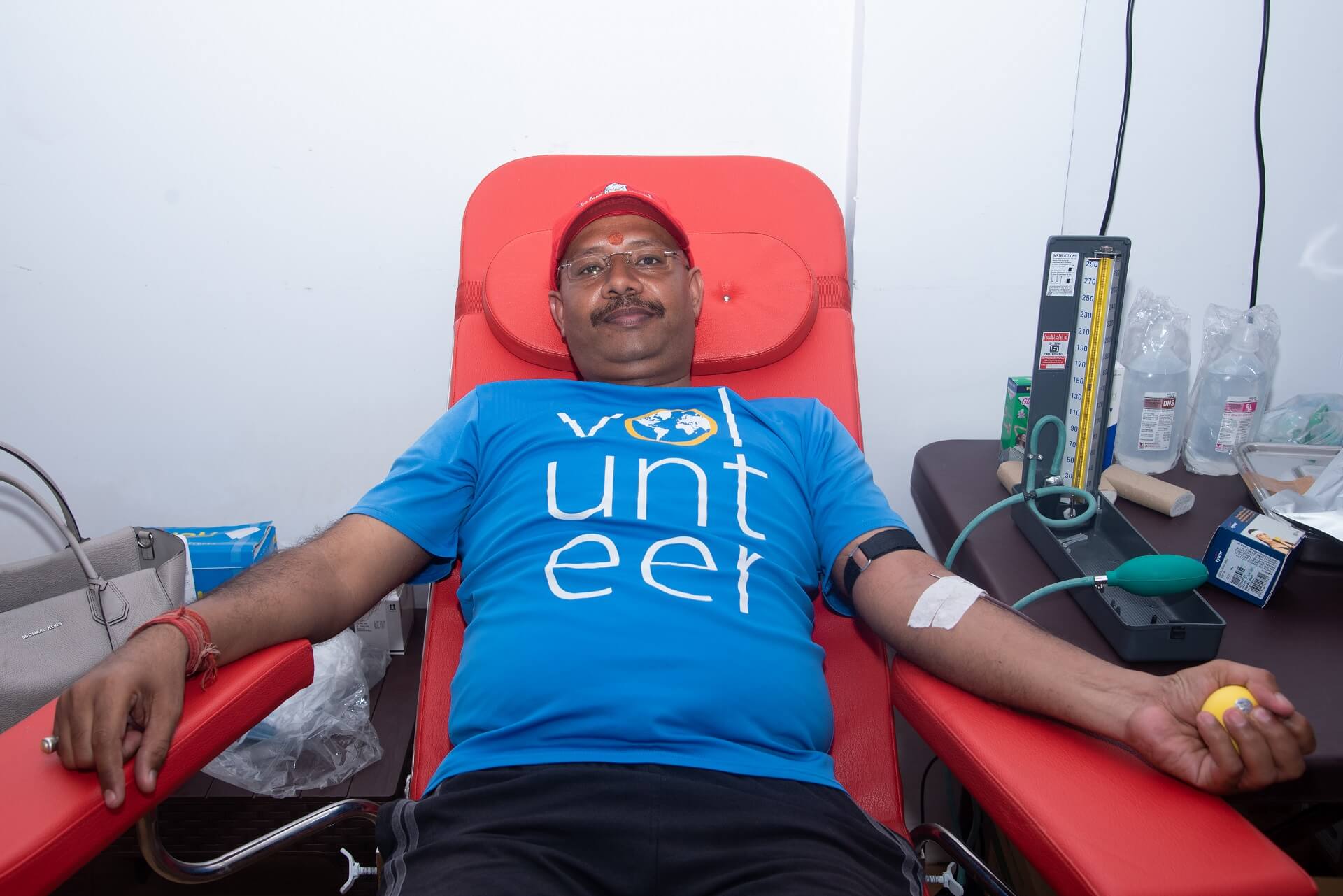 When approximately a pint of whole blood is collected, the donation is complete, and a staff person will place a bandage on your arm.